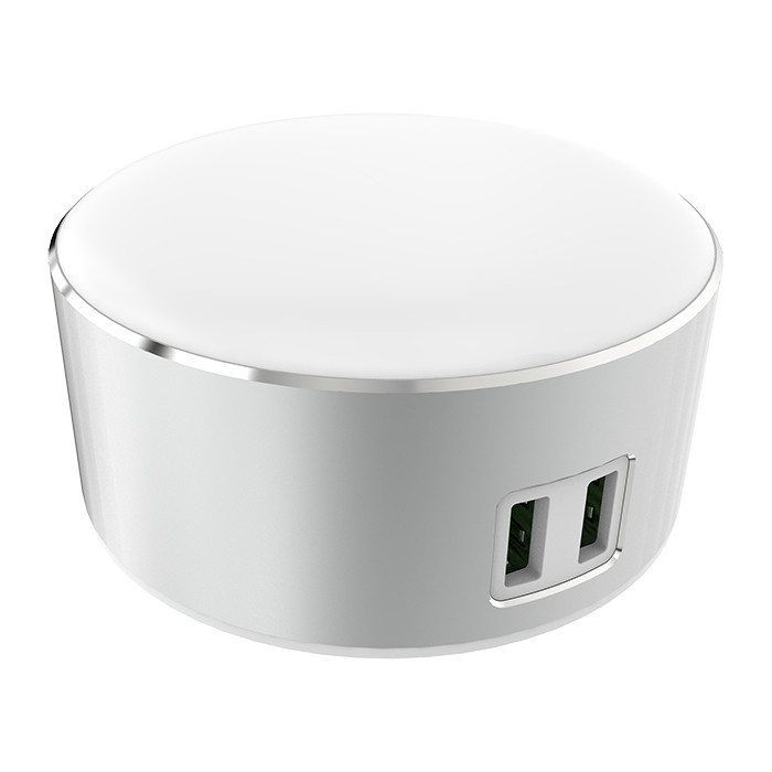 شارژر های رومیزی نسل جدیدی از شارژر ها می باشند که به طور کلی برای راحت تر کردن کار و جلوگیری از خرابی سیم ها در اثر اتصال های مکرر به برق طراحی شده اند . این شارژر ها به برق متصل شده و دارای تعدادی خروجی هستند که به طور همزمان می توانند چند دیوایس را برای شما شارژ کنند . شارژر وان مکس مدل DLK-2266 یک شارژر رومیزی مقاوم و با کیفیت ساخت بالاست که دارای 2خروجی با قابلیت فست شارژ است که آن را از سایر شارژر ها متمایز میکند، طراحی این شارژر بسیار جذاب است به طوری که بدنه تمام تیتانیومی آن دارای حسگر حساس به لمس میباشد و شما با لمس آن میتوانید شبخواب این دستگاه را فعال کنید که البته با یک بار لمس نور کمی میبینید و اگر به نور بیشتر احتیاج داشتید کافیست مجدد تا 3بار نور را زیاد کنید که به راحتی حتی امکان مطالعه نیز فراهم میشود و البته اگر شما در تاریکی مطلق نیاز به اتصال کابل به این شارژر را داشتید بر روی در گاه خروجی USB این محصول چراغی طراحی شده است تا شما به راحتی محل اتصال را پیدا کنید. برق ورودی به این شارژر می تواند از ۱۰۰ تا ۲۴۰ ولت باشد و برق خروجی آن ۵ ولت و 2.4 آمپر است. توان این محصول ۲۲ وات می باشد و جنس آن از تیتانیوم و پلاستیک مقاوم است . چراغ LEDدرون آن میتواند مانند یک شب خواب برای شما عمل کند و همچنین در محیط های تاریک و هنگام شب در پیدا کردن شارژر کمک زیادی به شما می کند.در زیر این محصول یک پد دایره ای شکل طراحی شده که به ثابت ماندن این محصول روی میز و سطوح مختلف کمک شایانی میکند و کابل 1.5متری آن امکان قرار گرفتن در اکثر مکان هارا فراهم میسازد