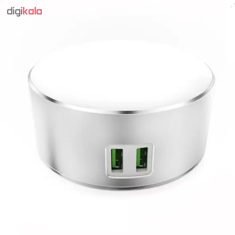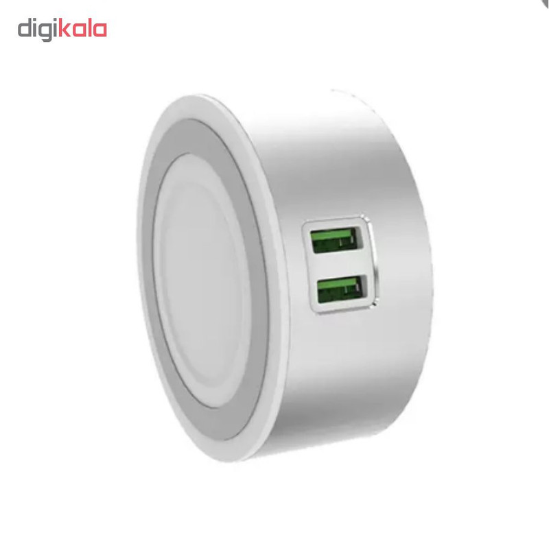 شارژر های رومیزی نسل جدیدی از شارژر ها می باشند که به طور کلی برای راحت تر کردن کار و جلوگیری از خرابی سیم ها در اثر اتصال های مکرر به برق طراحی شده اند . این شارژر ها به برق متصل شده و دارای تعدادی خروجی هستند که به طور همزمان می توانند چند دیوایس را برای شما شارژ کنند . شارژر وان مکس مدل DLK-2266 یک شارژر رومیزی مقاوم و با کیفیت ساخت بالاست که دارای 2خروجی با قابلیت فست شارژ است که آن را از سایر شارژر ها متمایز میکند، طراحی این شارژر بسیار جذاب است به طوری که بدنه تمام تیتانیومی آن دارای حسگر حساس به لمس میباشد و شما با لمس آن میتوانید شبخواب این دستگاه را فعال کنید که البته با یک بار لمس نور کمی میبینید و اگر به نور بیشتر احتیاج داشتید کافیست مجدد تا 3بار نور را زیاد کنید که به راحتی حتی امکان مطالعه نیز فراهم میشود و البته اگر شما در تاریکی مطلق نیاز به اتصال کابل به این شارژر را داشتید بر روی در گاه خروجی USB این محصول چراغی طراحی شده است تا شما به راحتی محل اتصال را پیدا کنید. برق ورودی به این شارژر می تواند از ۱۰۰ تا ۲۴۰ ولت باشد و برق خروجی آن ۵ ولت و 2.4 آمپر است. توان این محصول ۲۲ وات می باشد و جنس آن از تیتانیوم و پلاستیک مقاوم است . چراغ LEDدرون آن میتواند مانند یک شب خواب برای شما عمل کند و همچنین در محیط های تاریک و هنگام شب در پیدا کردن شارژر کمک زیادی به شما می کند.در زیر این محصول یک پد دایره ای شکل طراحی شده که به ثابت ماندن این محصول روی میز و سطوح مختلف کمک شایانی میکند و کابل 1.5متری آن امکان قرار گرفتن در اکثر مکان هارا فراهم میسازد