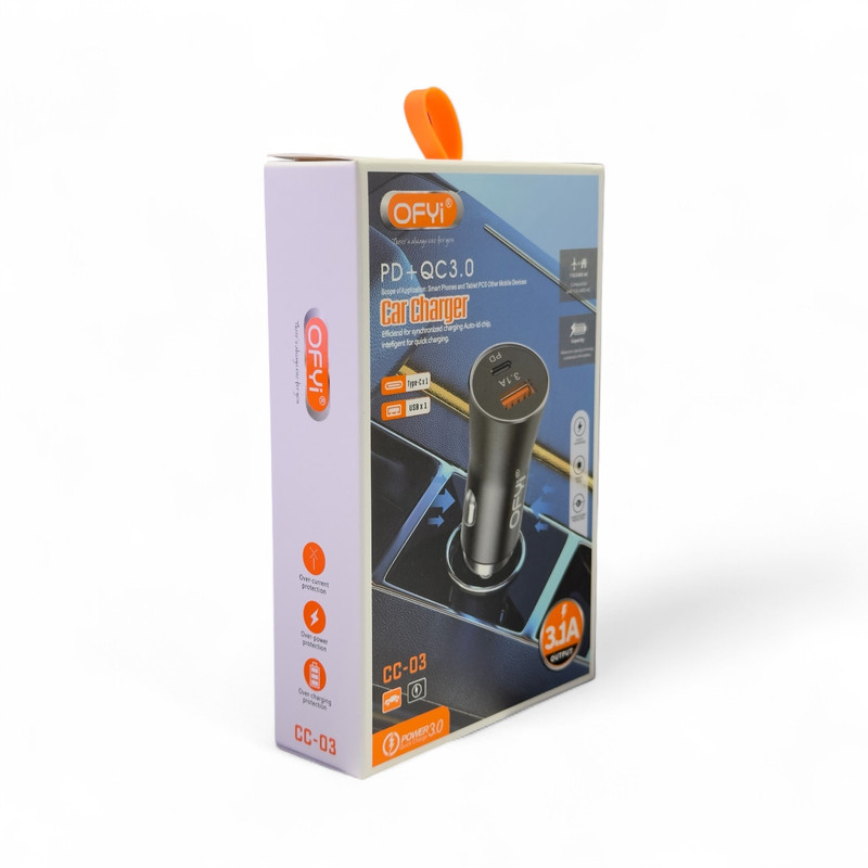 آداپتور شارژر فندکی مدل سی سی 03 از جمله محصولات تولید شده توسط شرکت OFYi است که از دو پورت تایپ سی و یو اس بی فست شارژ برخوردار است. با کمک این فندکی شرکت معتبر اوفی می توانید بدون آسیب به باطری گوشی و بدون فشار به برق اتومبیل موبایل و تبلت خود را شارژ کنید. این آداپتور مناسب گوشی هایی است که از قابلیت شارژ سریع پشتیبانی می کنند.
