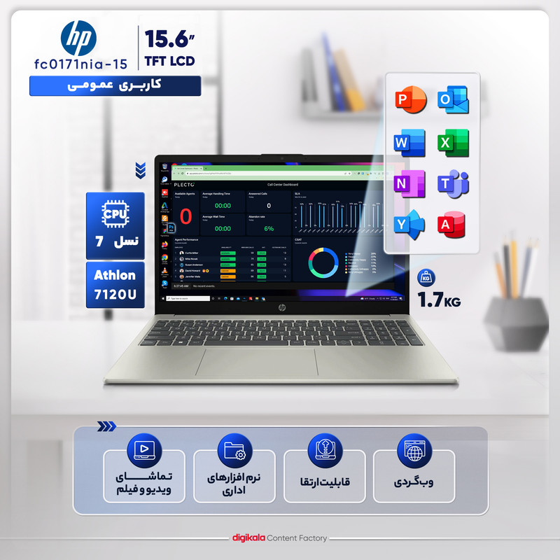لپ تاپ 15.6 اینچی اچ پی مدل fc0171nia-15-Athlon 7120U-8GB LPDDR5 3200MHz-256GB SSD-TFT